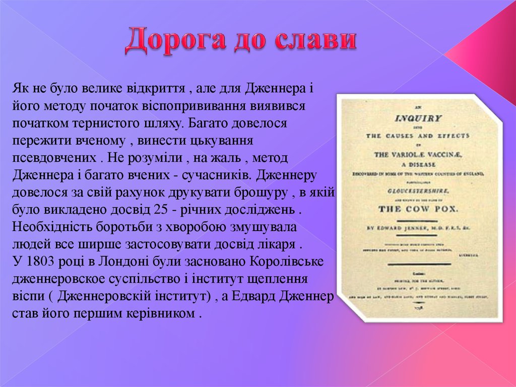Як не було велике відкриття , але для Дженнера ійого методу початок віспопрививання виявився