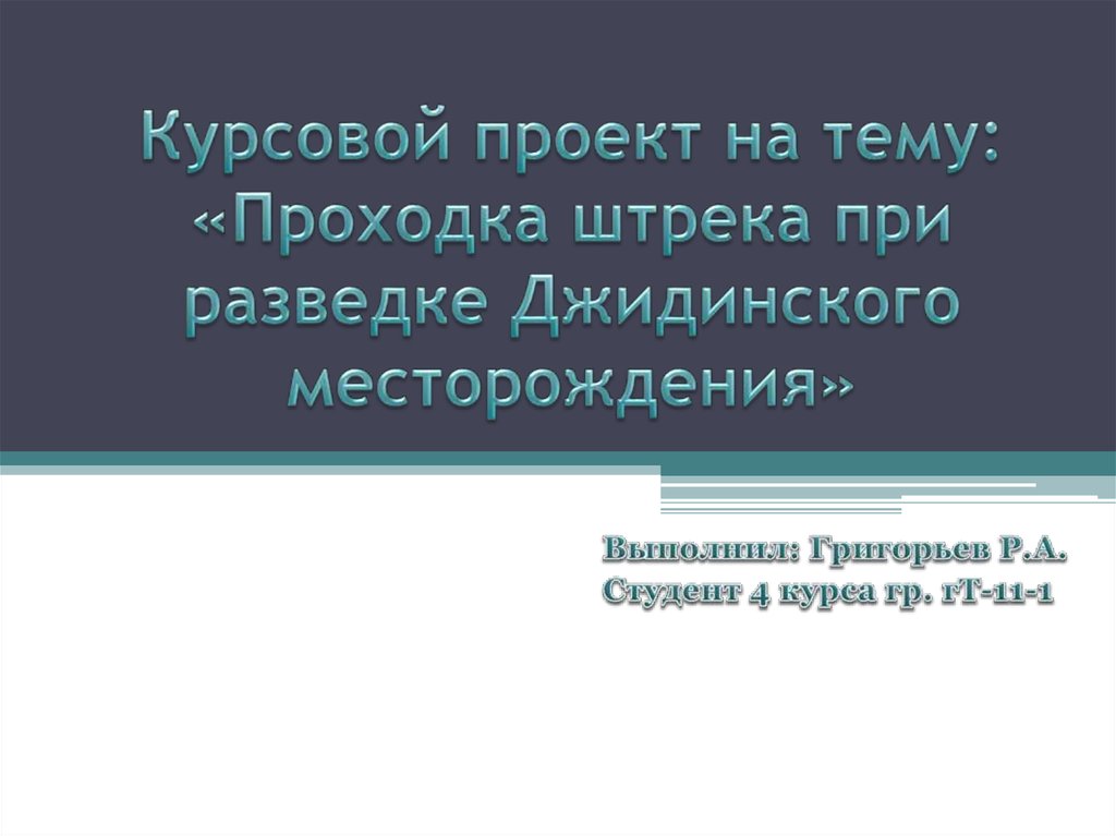 1. Курсовой проект на тему: «Проходка штрека при разведке Джидинского месторождения»