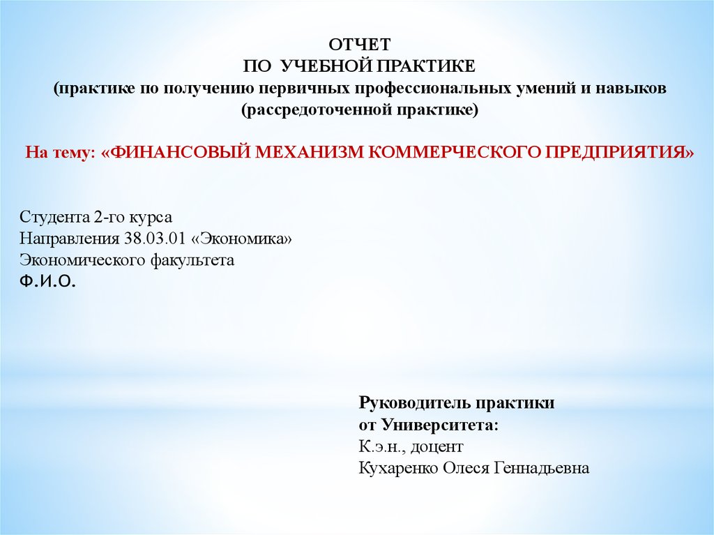 На тему: «ФИНАНСОВЫЙ МЕХАНИЗМ КОММЕРЧЕСКОГО ПРЕДПРИЯТИЯ»
