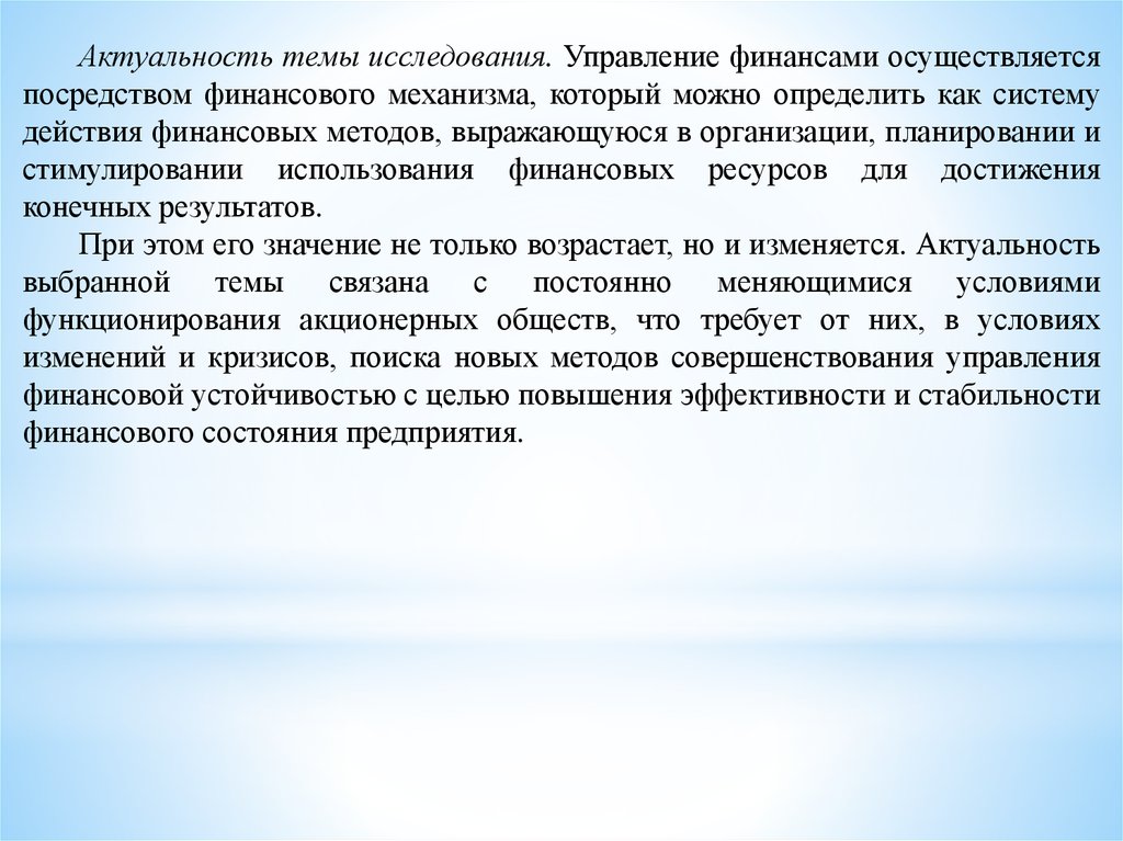 Актуальность темы исследования. Управление финансами осуществляетсяпосредством финансового механизма, который можно определить как систему