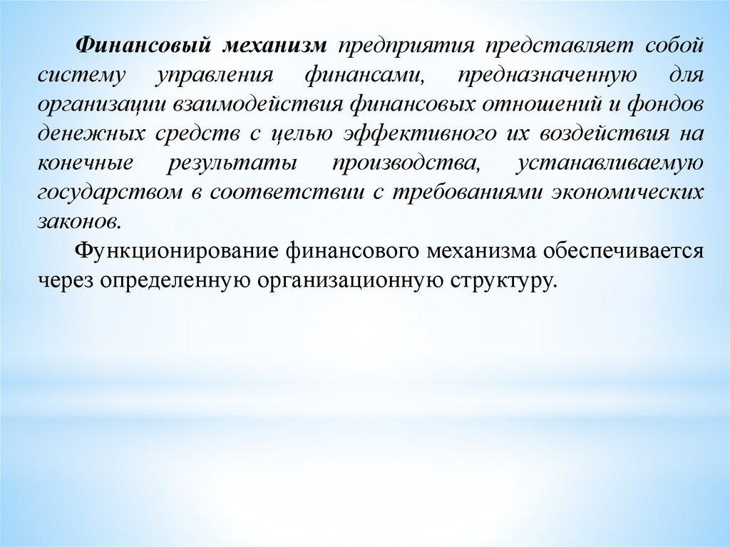 Финансовый механизм предприятия представляет собойсистему управления финансами, предназначенную для