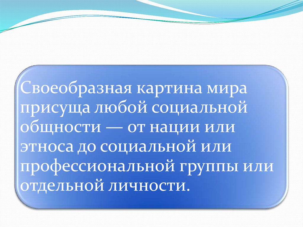Своеобразная картина мираприсуща любой социальной