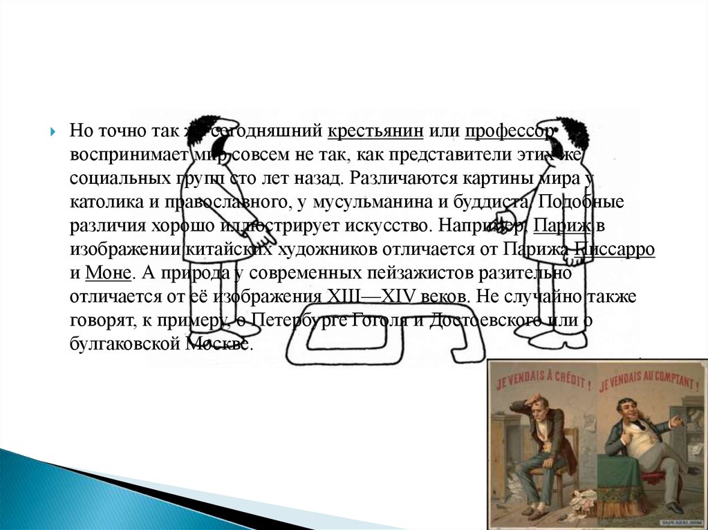 Но точно так же сегодняшний крестьянин или профессорвоспринимает мир совсем не так, как представители этих же