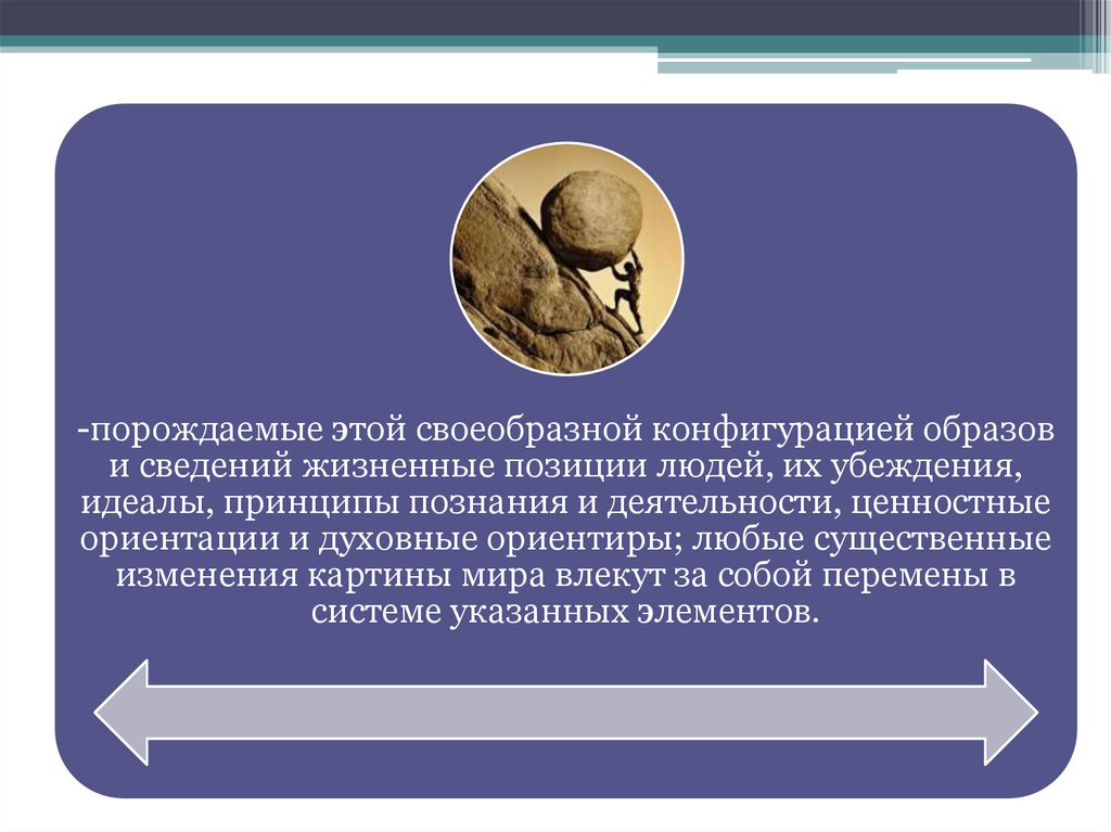 (то есть чувственно-образная часть) — это совокупность наглядныхобразов культуры, человека, его места в мире, взаимоотношений с
