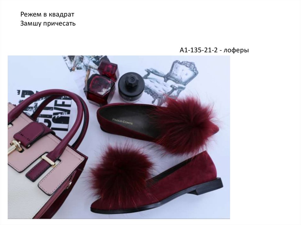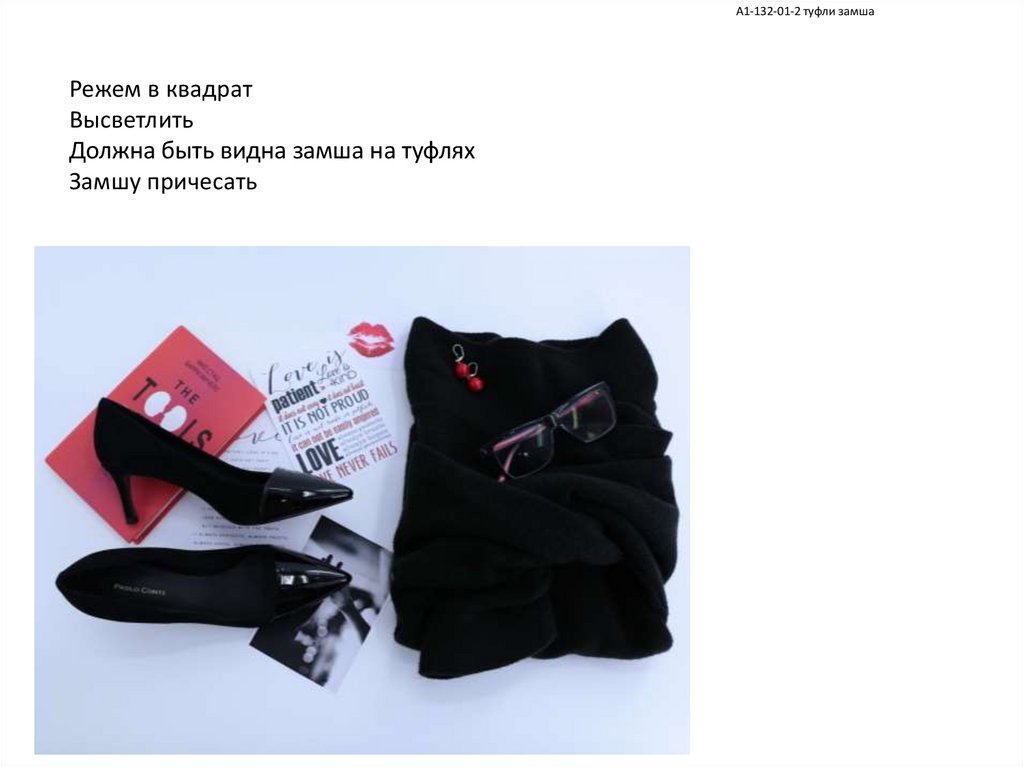Режем в квадрат, обрезаем со стороны журнала, как на фотоТуфли чуть высветлить, не видно что это замша.