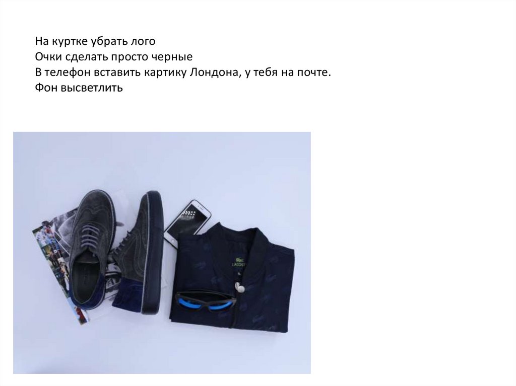 На куртке убрать логоОчки сделать просто черные