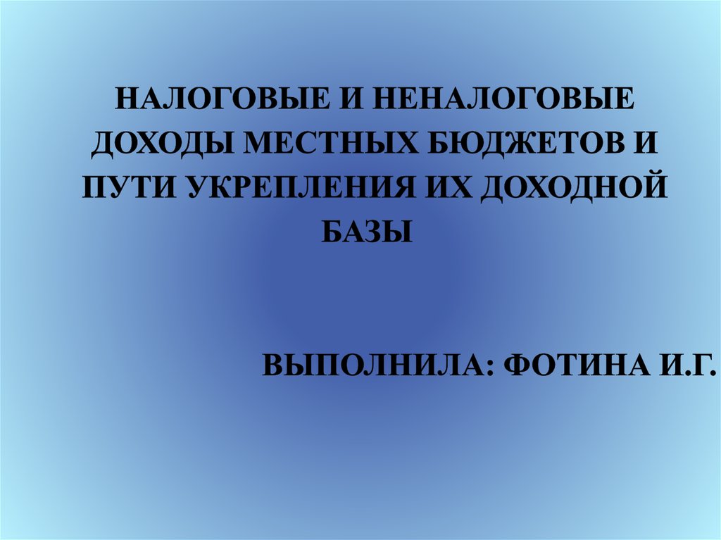1. НАЛОГОВЫЕ И НЕНАЛОГОВЫЕ ДОХОДЫ МЕСТНЫХ БЮДЖЕТОВ И ПУТИ УКРЕПЛЕНИЯ ИХ ДОХОДНОЙ БАЗЫ