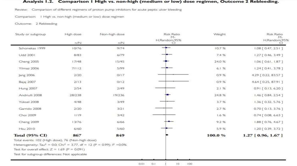 • Систематический обзор показал что Мета-анализ не выявил статистически значимыхвзаимосвязей между эффектом лечения (для результатов смертности, повторного
