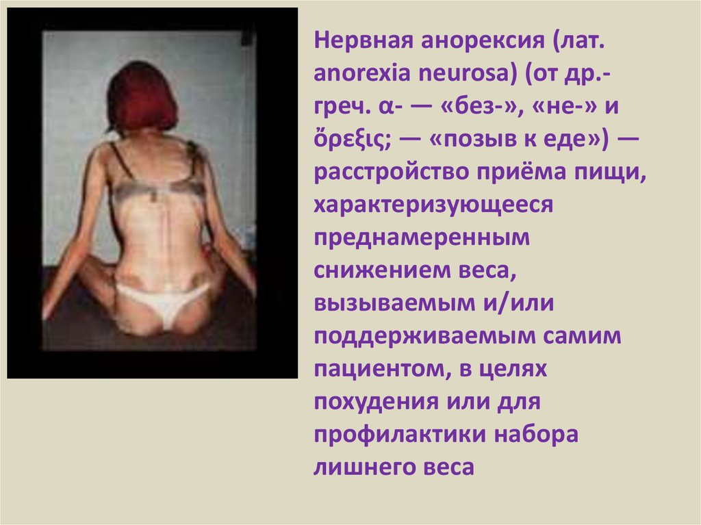 Нервная анорексия (лат.anorexia neurosa) (от др.греч. α- — «без-», «не-» и