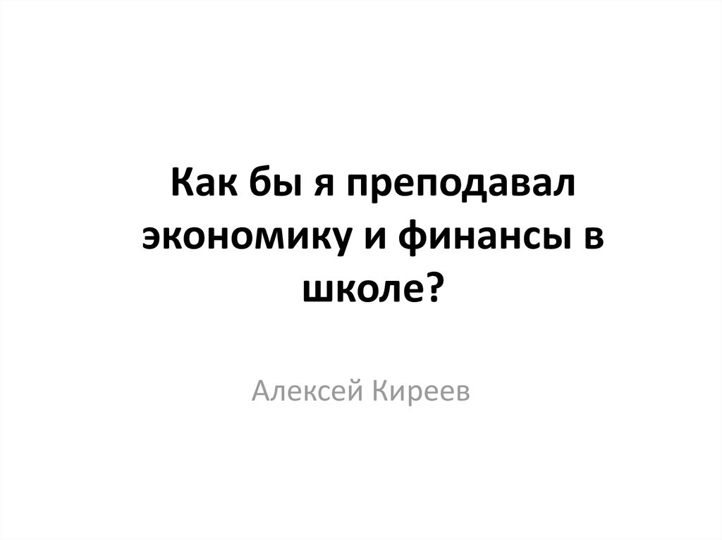 1. Как бы я преподавал экономику и финансы в школе?
