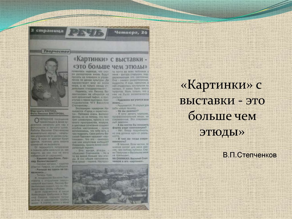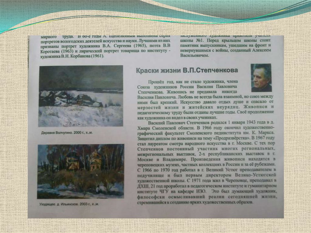 1. «Городской пейзаж в творчестве череповецкого художника В.П. Степченкова».