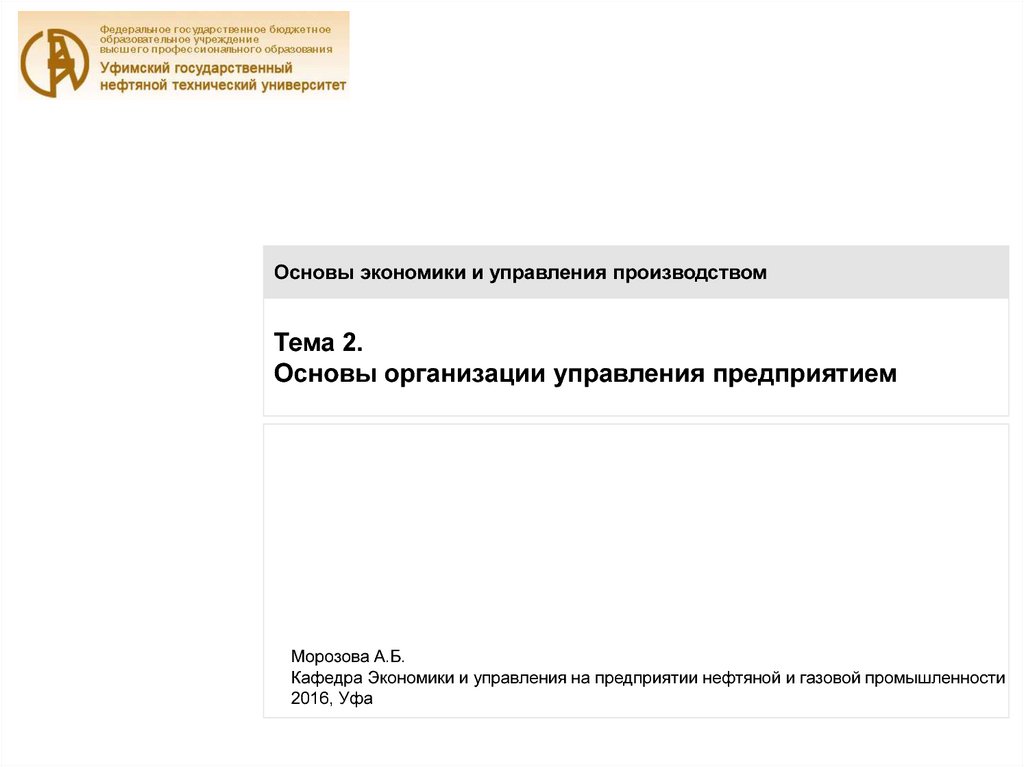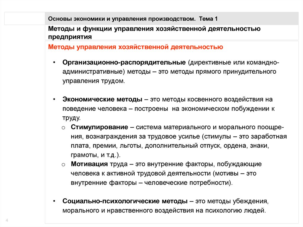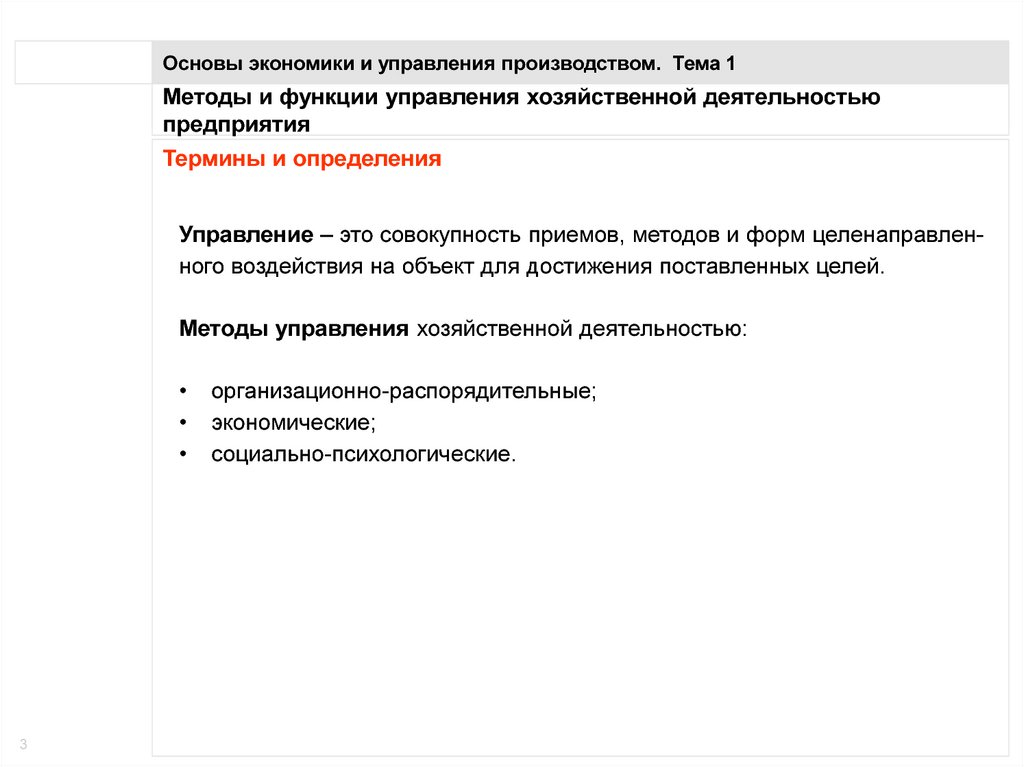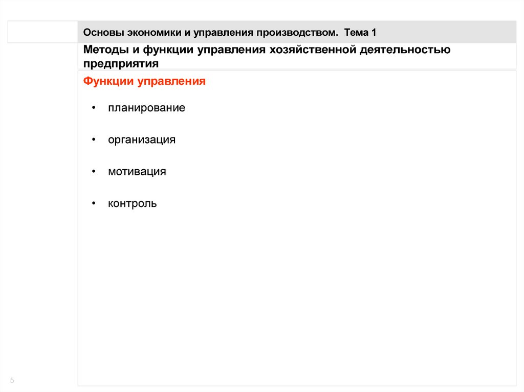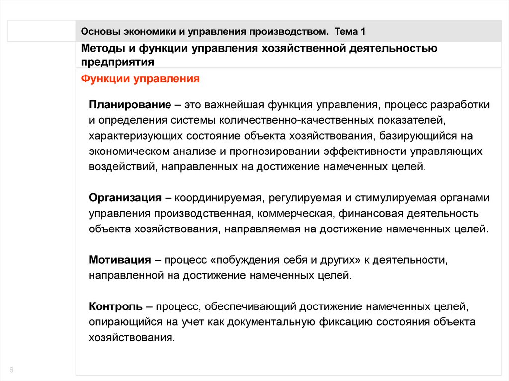 Основы экономики и управления производством. Тема 1Методы и функции управления хозяйственной деятельностью
