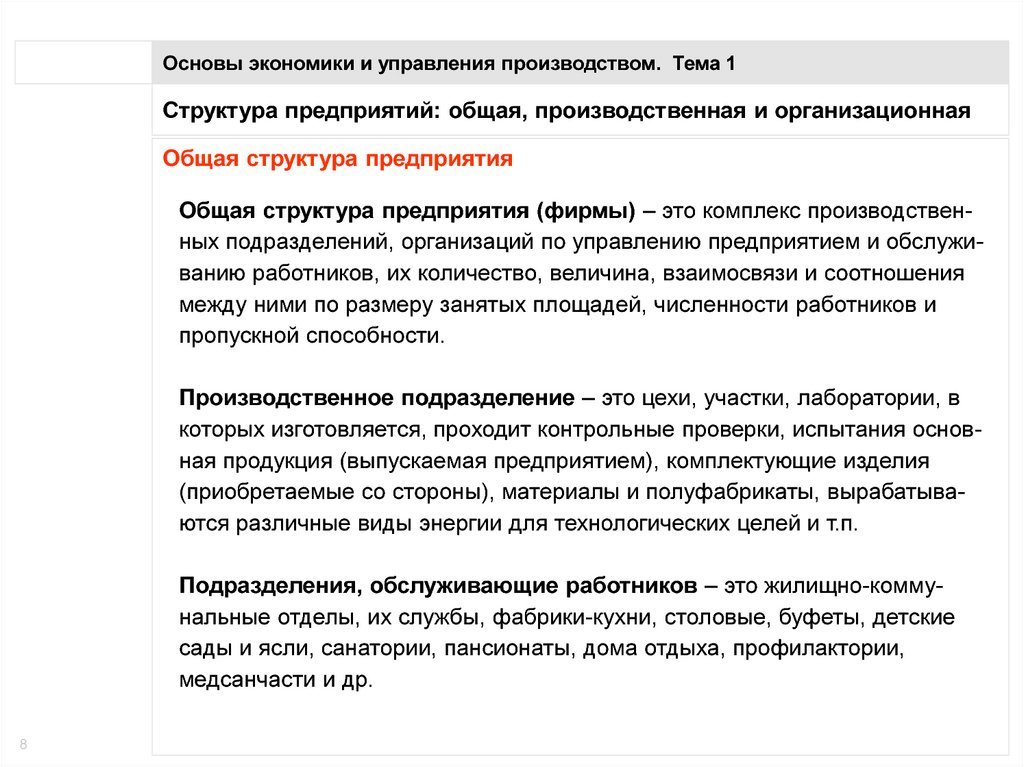 Общая структура предприятия (фирмы) – это комплекс производственных подразделений, организаций по управлению предприятием и обслуживанию работников, их количество, величина, взаимосвязи и соотношения