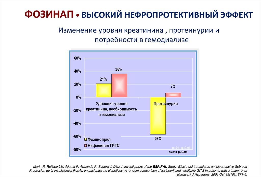 ФОЗИНАП • ВЫСОКИЙ НЕФРОПРОТЕКТИВНЫЙ ЭФФЕКТИзменение уровня креатинина , протеинурии и