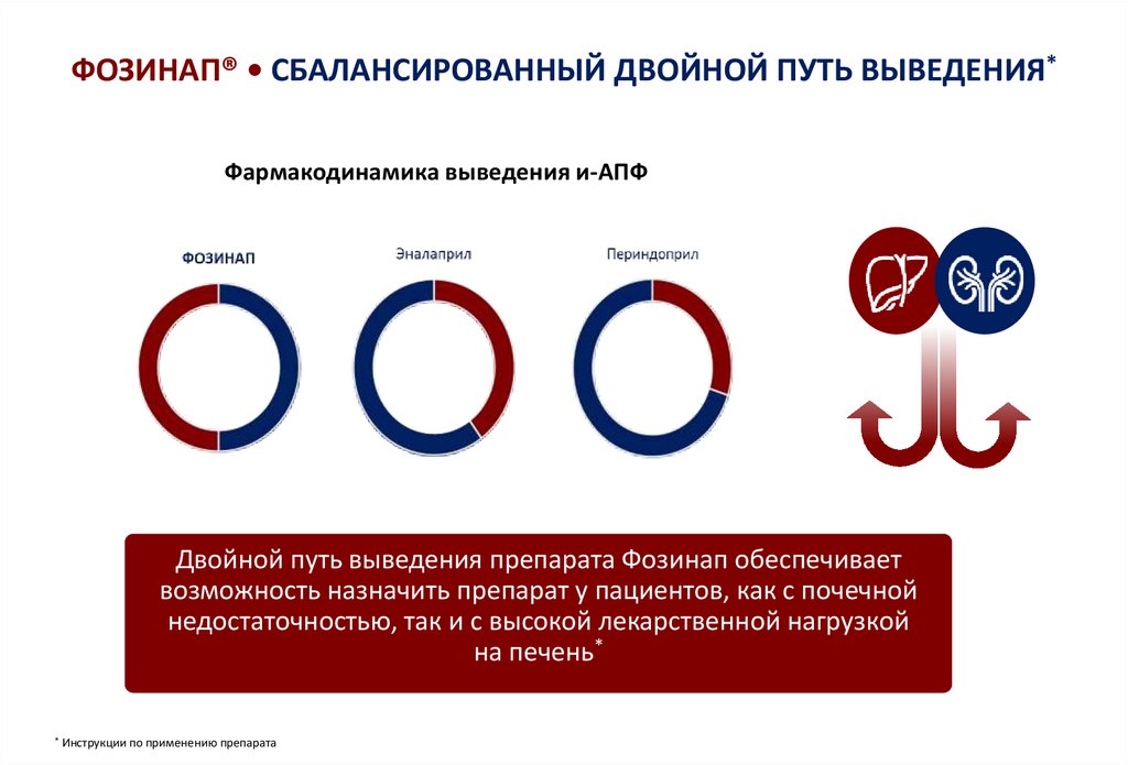 ФОЗИНАП® • СБАЛАНСИРОВАННЫЙ ДВОЙНОЙ ПУТЬ ВЫВЕДЕНИЯ*Фармакодинамика выведения и-АПФ
