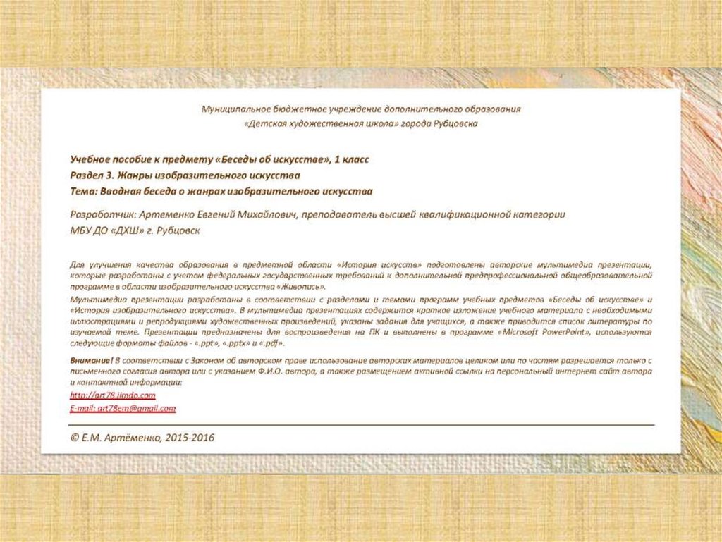 • В современной искусствоведческой литературе сложились определенная схема и система