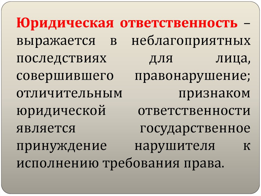 Юридическая ответственность –выражается в неблагоприятных