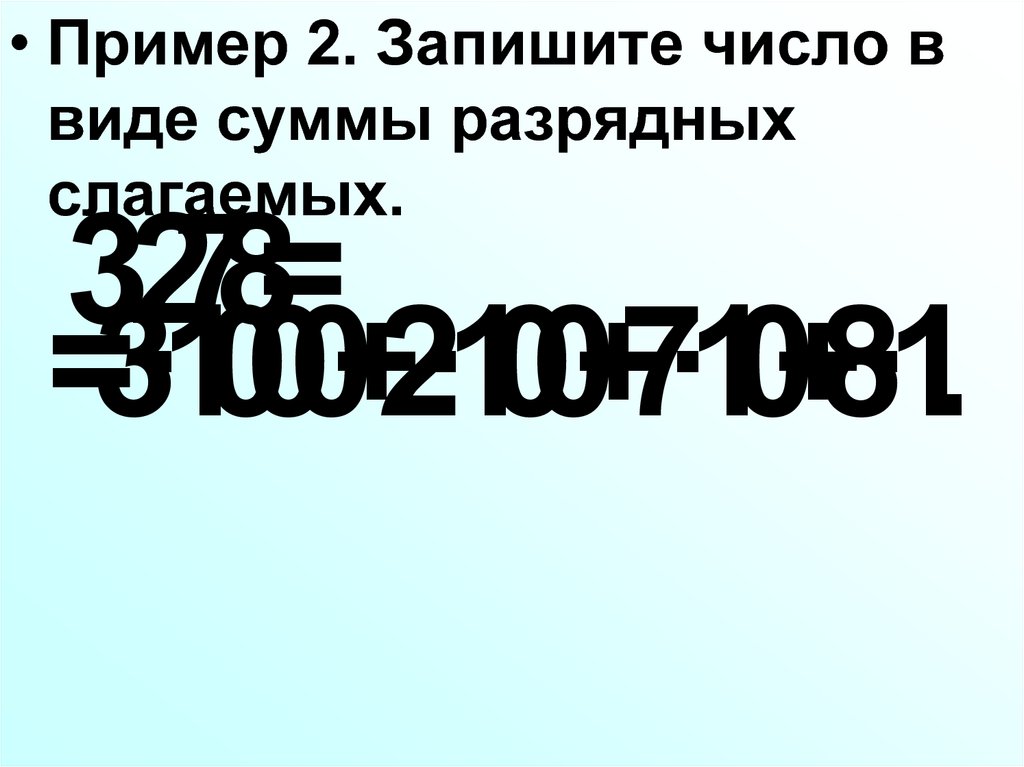 • Пример 2. Запишите число ввиде суммы разрядных