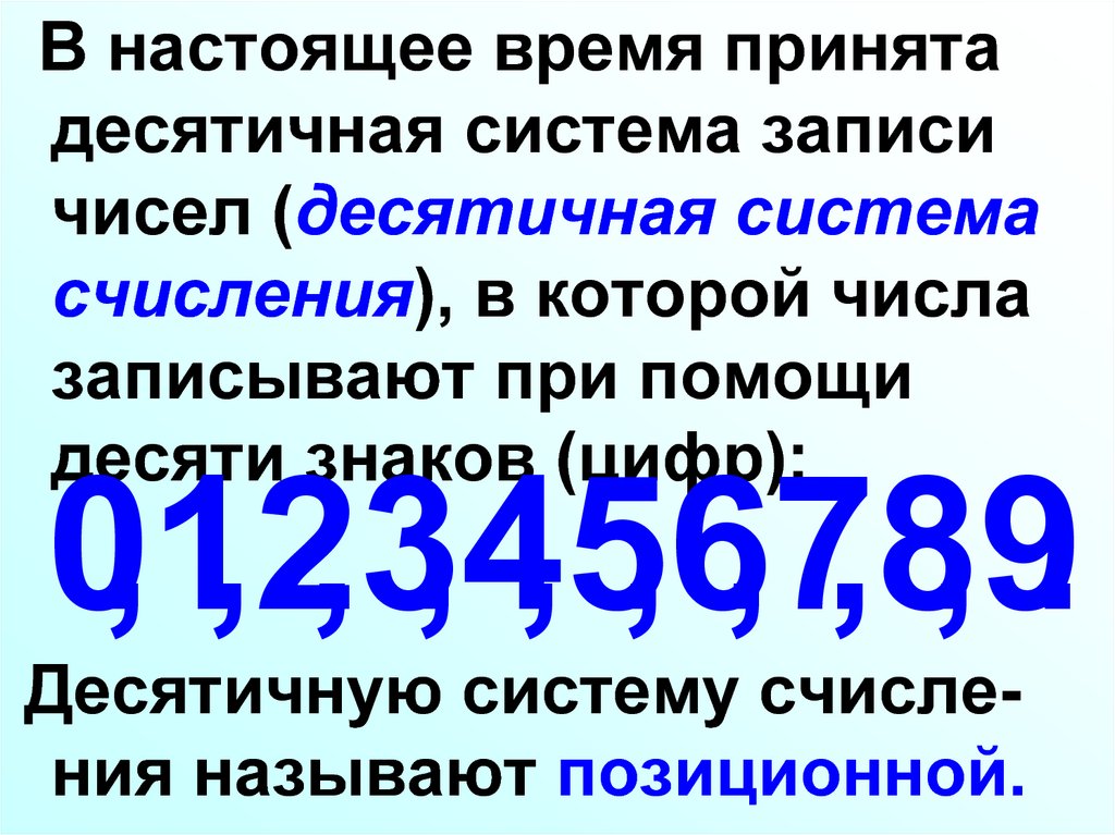 Десятичную систему счисления называют позиционной.