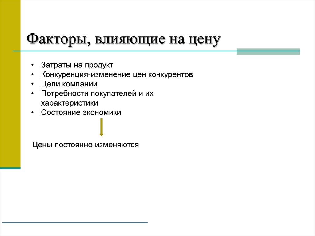 Факторы, влияющие на ценуЗатраты на продукт