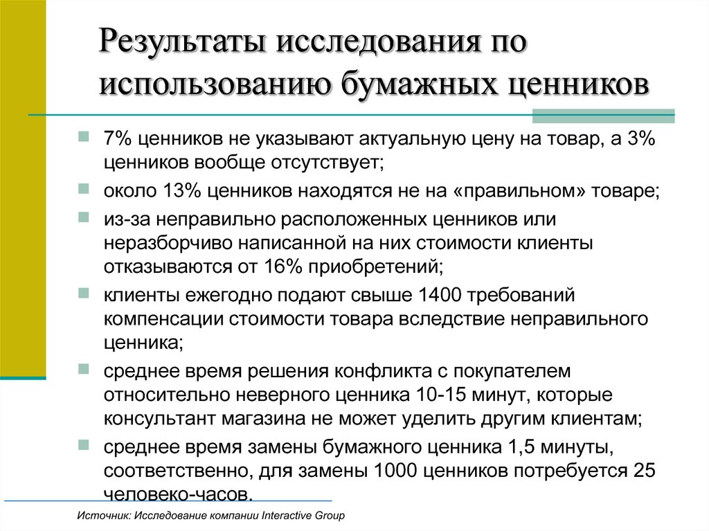 Результаты исследования поиспользованию бумажных ценников