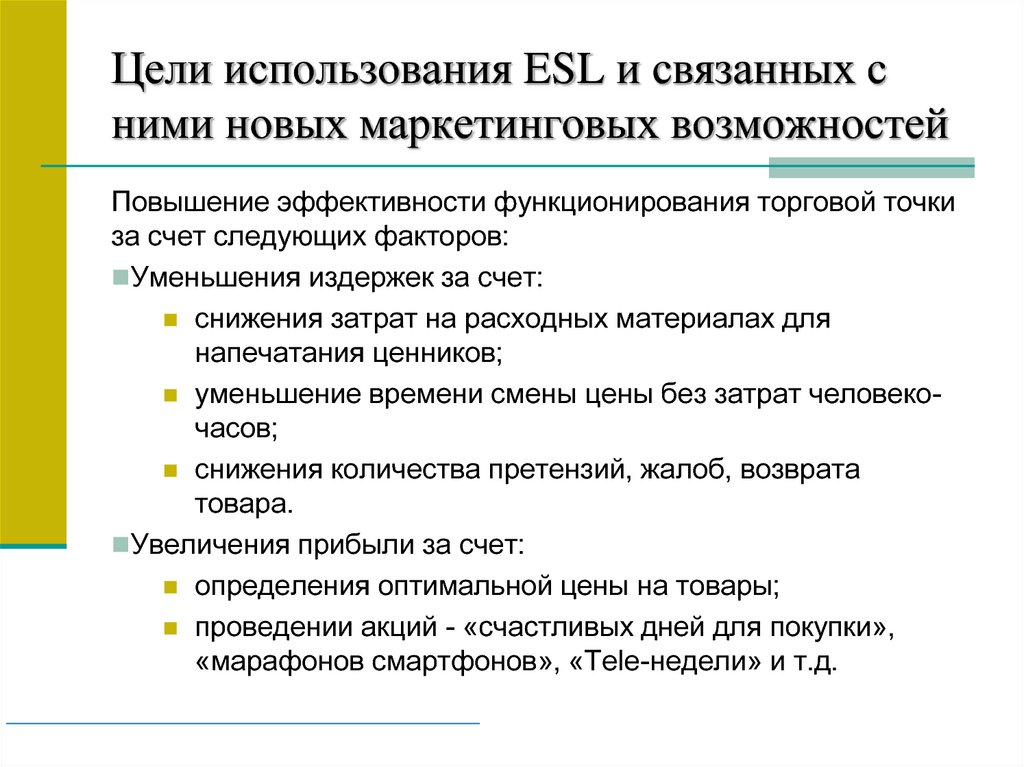 Цели использования ESL и связанных сними новых маркетинговых возможностей
