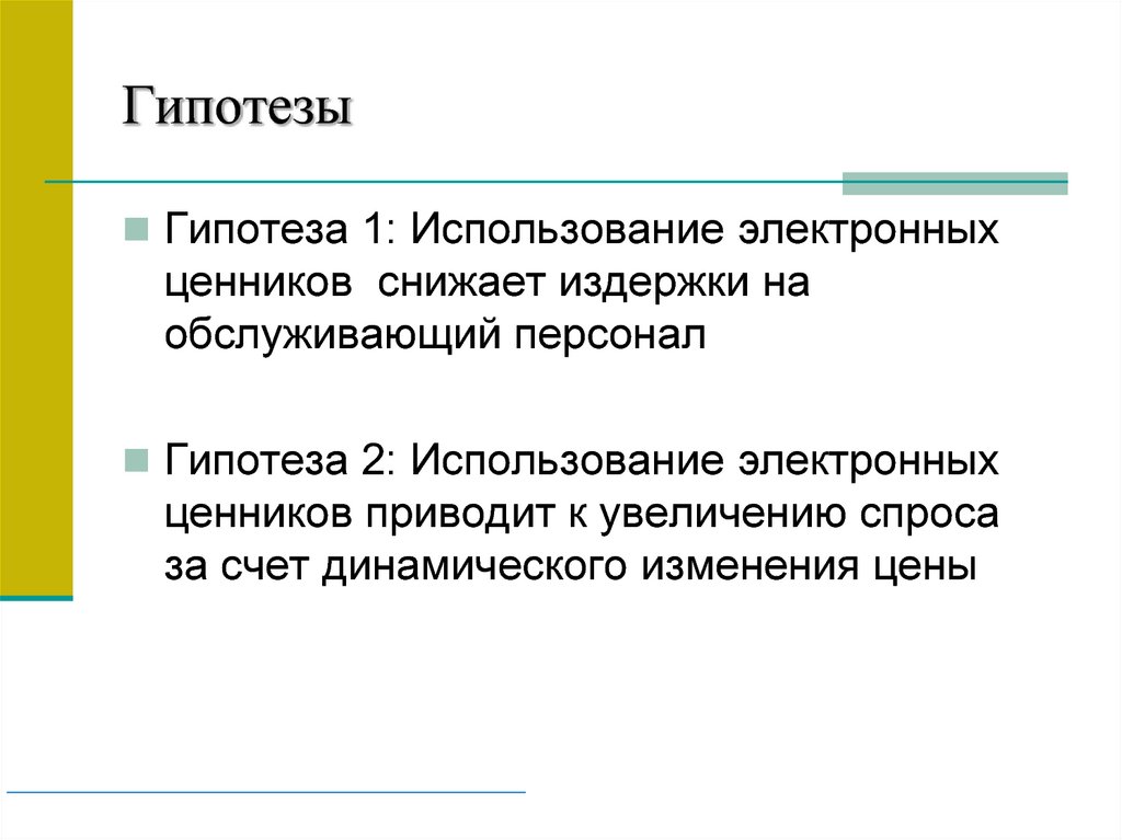 ГипотезыГипотеза 1: Использование электронных