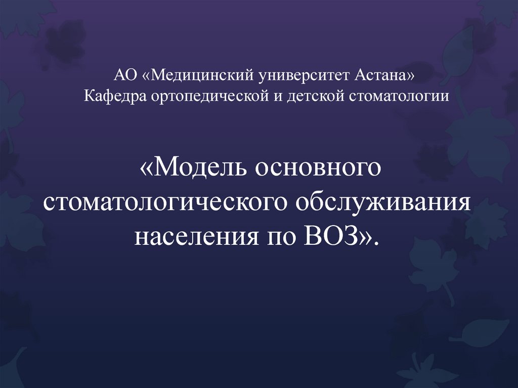 1. АО «Медицинский университет Астана» Кафедра ортопедической и детской стоматологии
