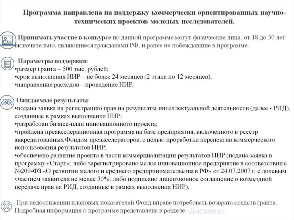 Программы содействия развитию предприятий в научно- технической среде