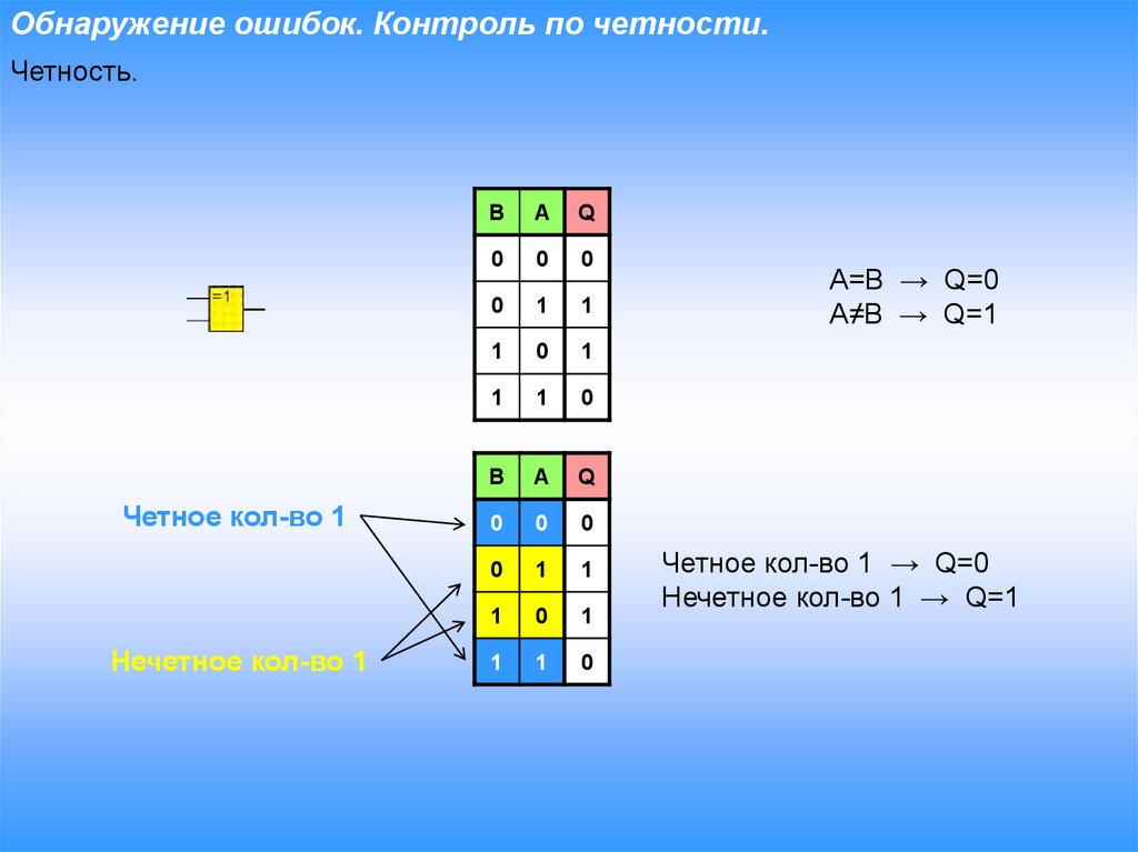 Цифровая схемотехника. Исключающее ИЛИ. Контроль по четности