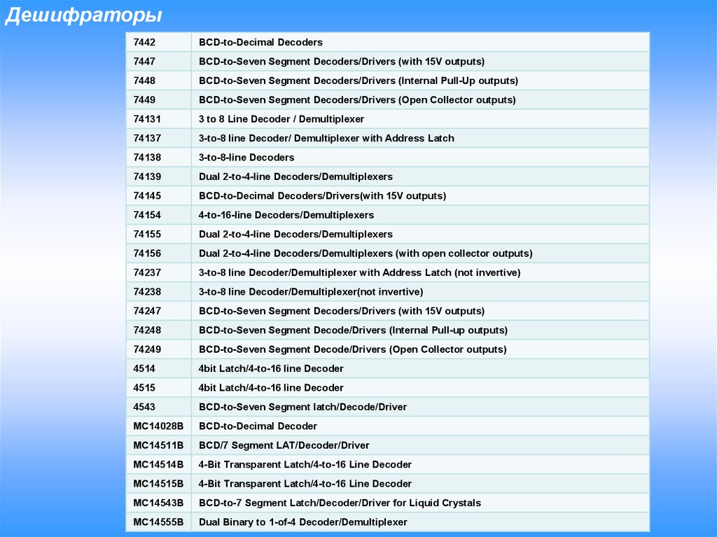 Дешифраторы. Шифраторы