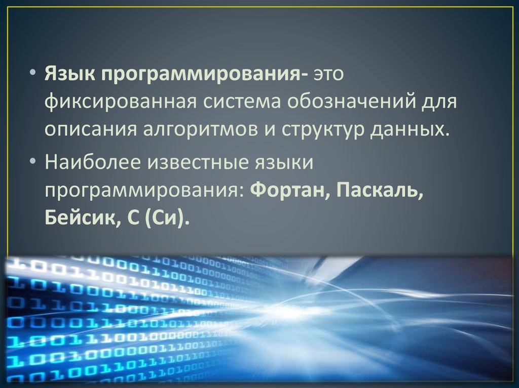 • Язык программирования- этофиксированная система обозначений для
