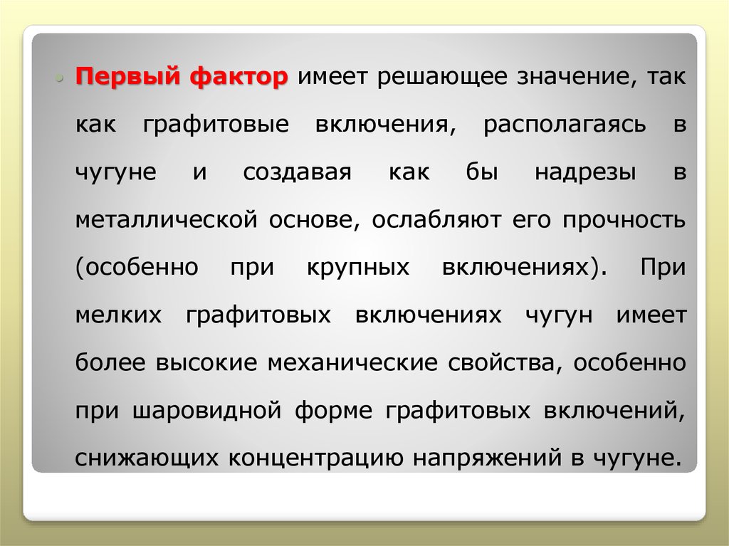снижающих концентрацию напряжений в чугуне.