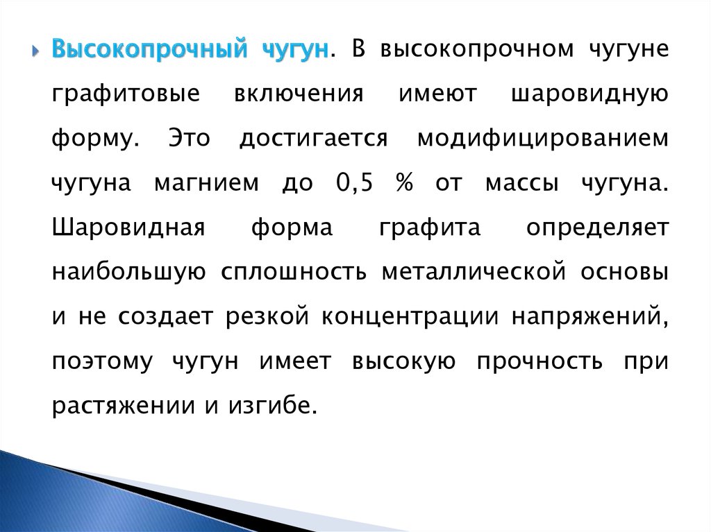 Высокопрочный чугун. В высокопрочном чугунеграфитовые