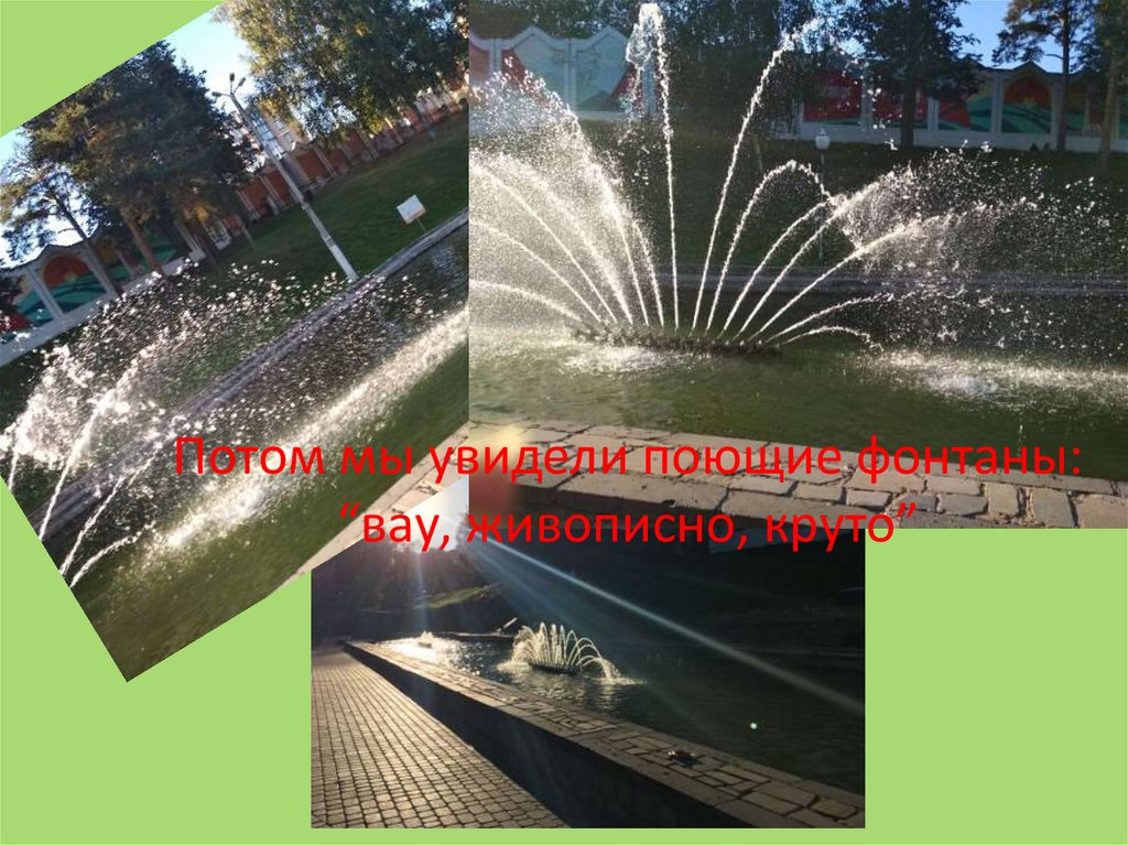 Потом мы увидели поющие фонтаны:“вау, живописно, круто”