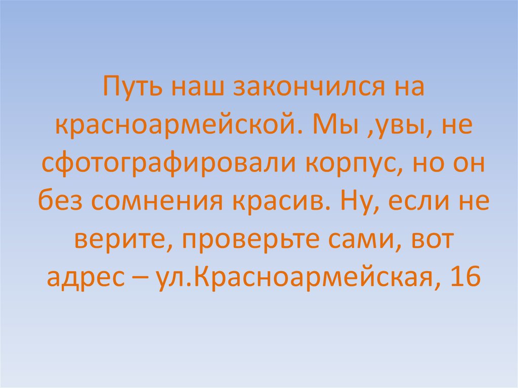 Путь наш закончился накрасноармейской. Мы ,увы, не