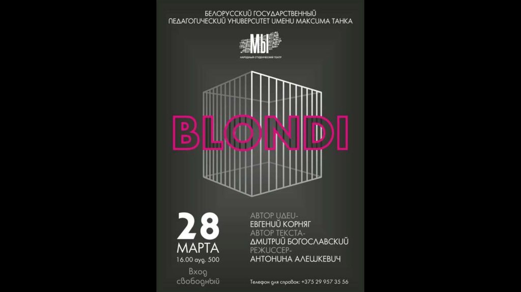 Народный студенческий театр «МЫ» Репетиции: понедельник среда пятница 19.00 тел.: +375 44 558 80 60 +375 25 953 36 24 +375 33