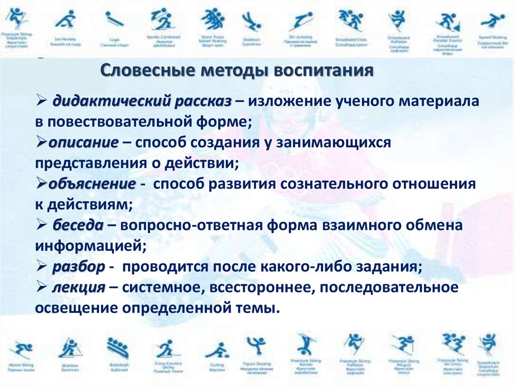 Методы использования слова в порцессе физвоспитания