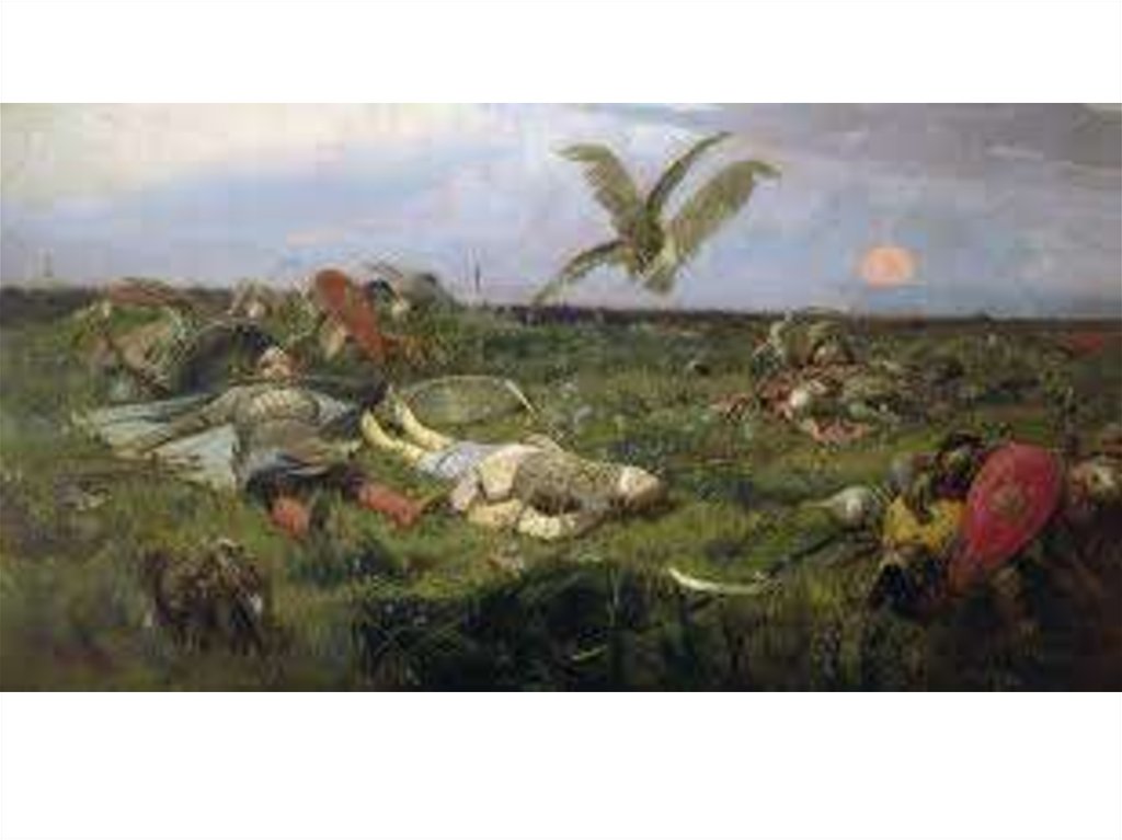 Крик орлов доносится из мглы Знать, на кости русские скликают(зовут)