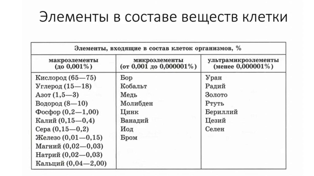 химическом составе живых клеток и