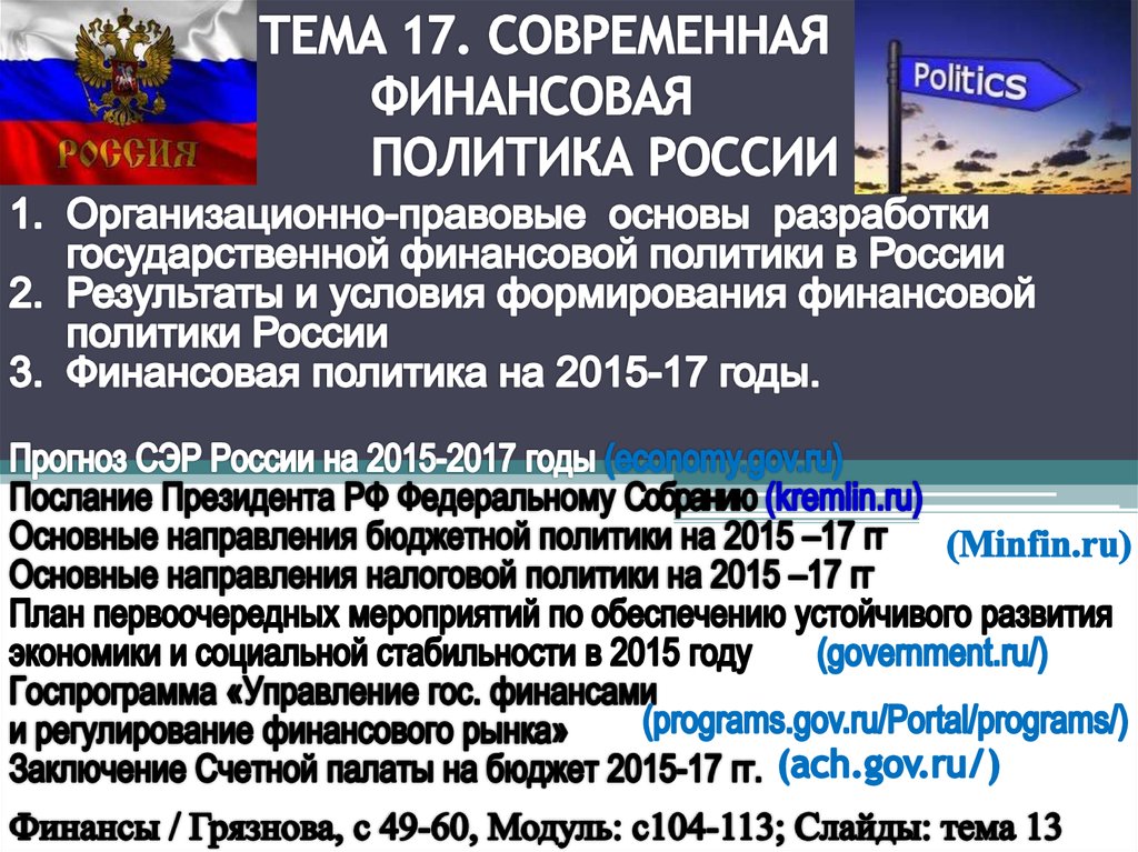 Современная финансовая политика России. (Тема 17)