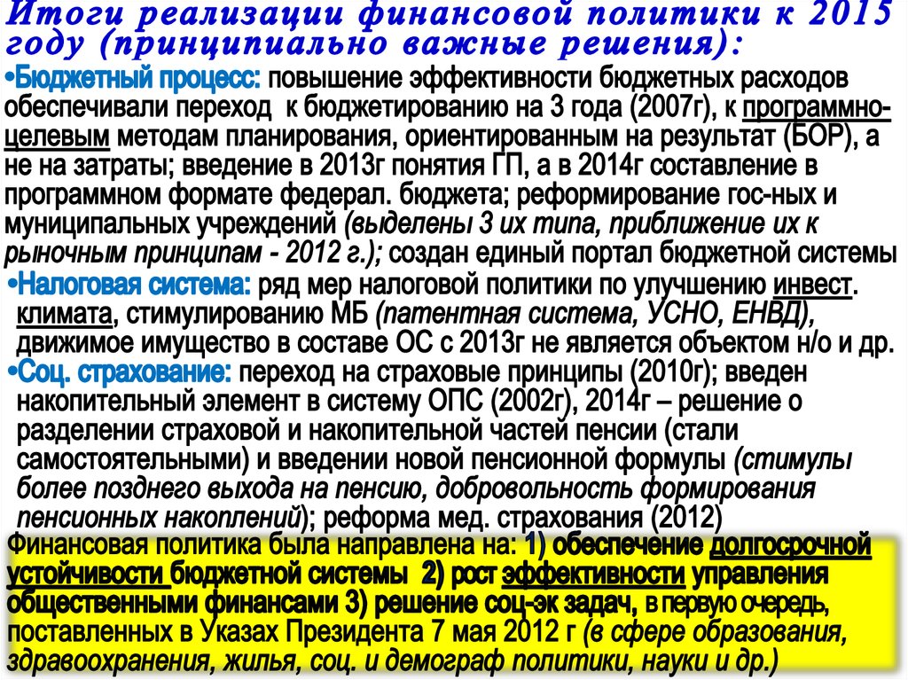 Развитие финансовой политики в России