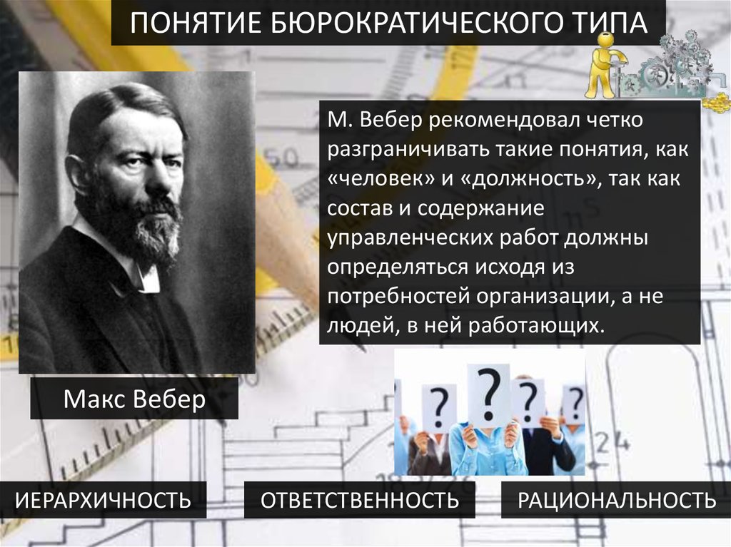 ПОНЯТИЕ БЮРОКРАТИЧЕСКОГО ТИПАМ. Вебер рекомендовал четко