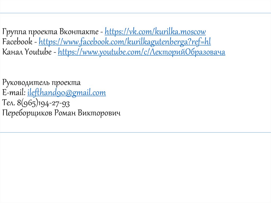 Группа проекта Вконтакте - https://vk.com/kurilka.moscowFacebook - https://www.facebook.com/kurilkagutenberga?ref=hl