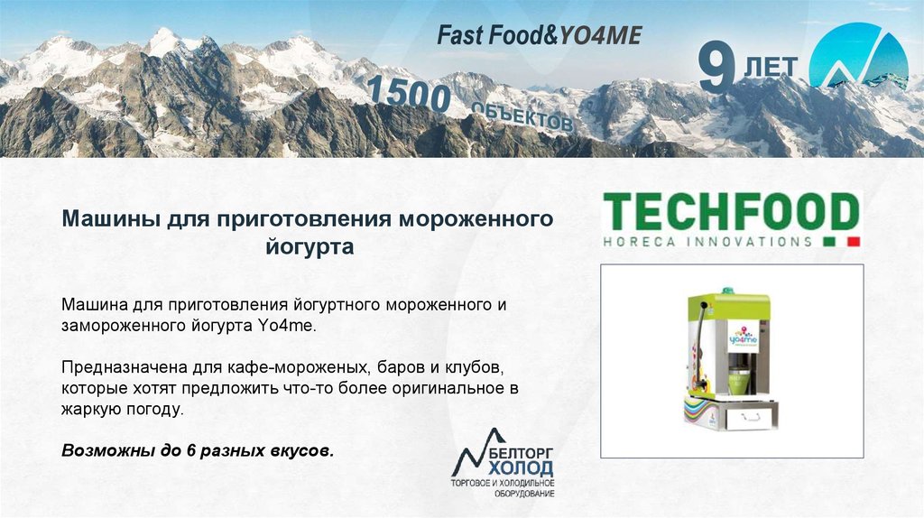 Fast Food&YO4MEМашины для приготовления мороженного