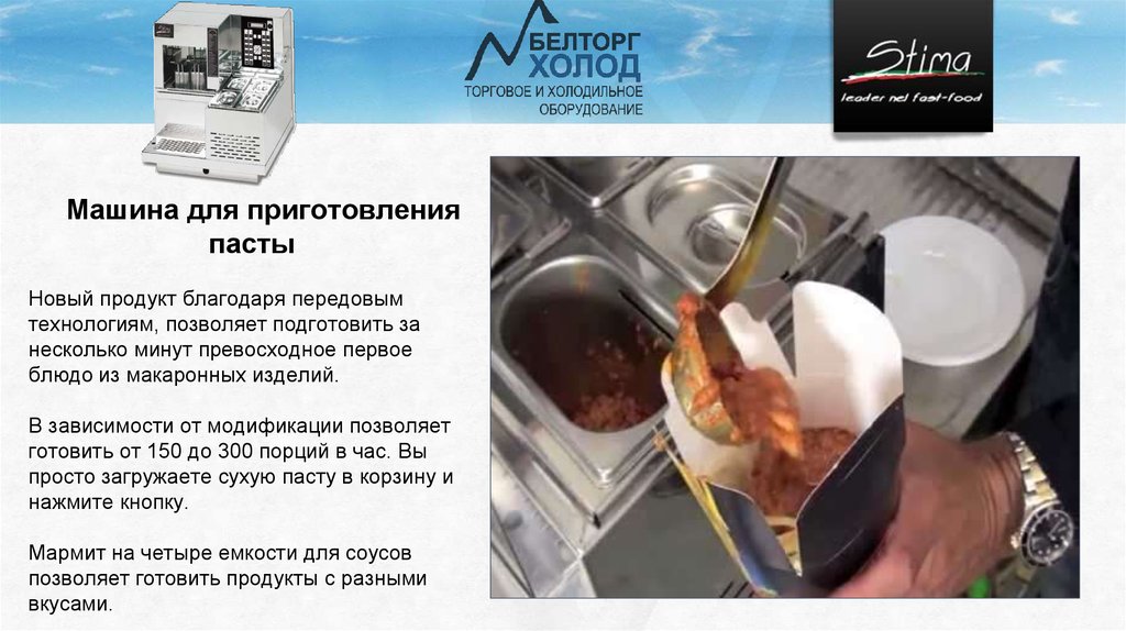 готовить от 150 до 300 порций в час. Вы