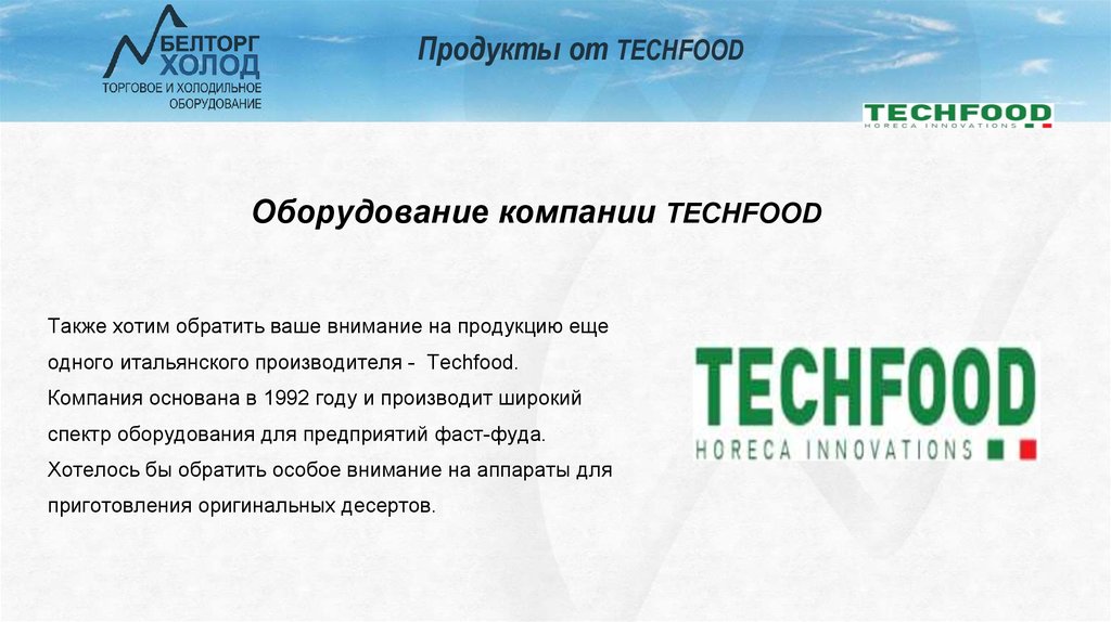 Продукты от ТECHFOODОборудование компании TECHFOOD