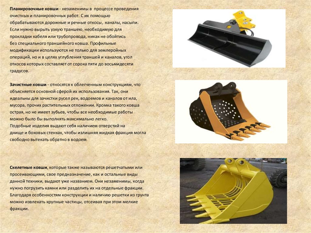 4. РАЗНОВИДНОСТИ ЭКСКАВАТОРНЫХ КОВШЕЙ