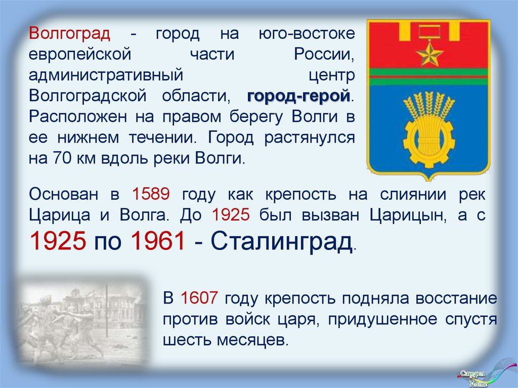 Волгоград - город на юго-востокеевропейской