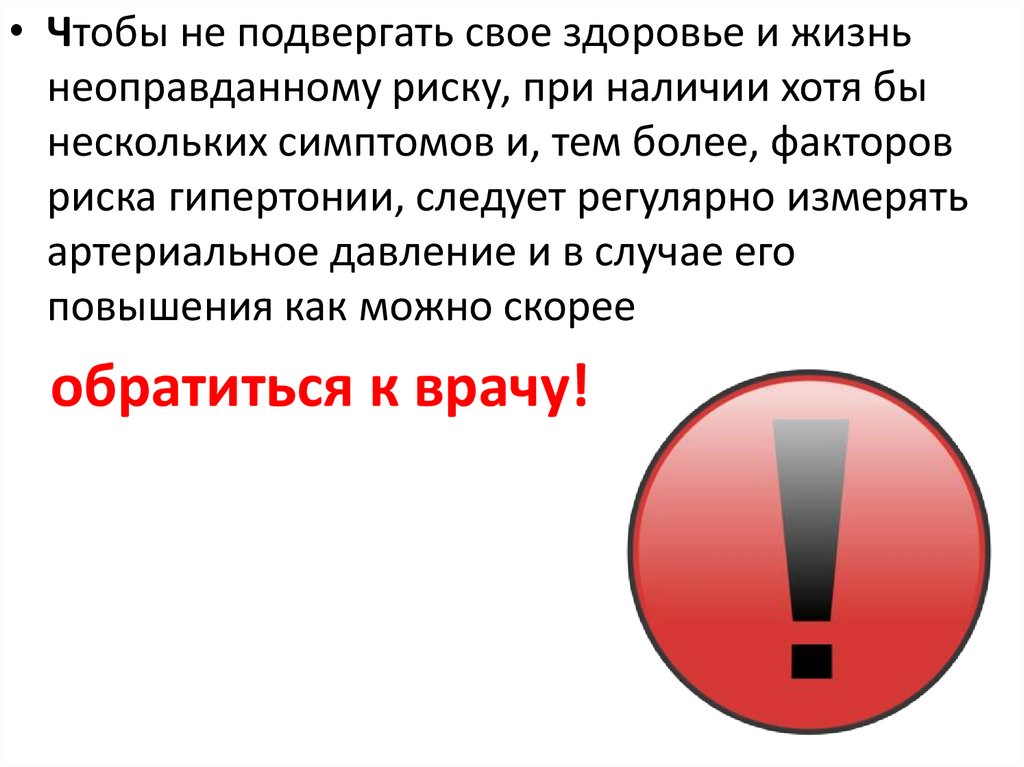 • Чтобы не подвергать свое здоровье и жизньнеоправданному риску, при наличии хотя бы